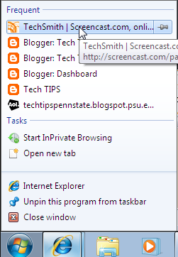 - If you right-click a taskbar button, you will get a jump list of recently opened files. You can also "pin" files to this list so they remain there.